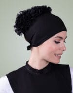 Back-Tie Hijab Cap with Viscose Fabric and Ruffle Trim
