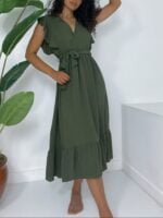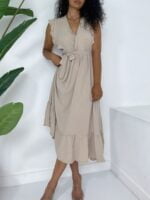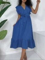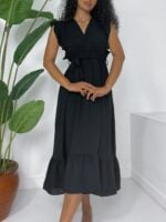 Original price was: ₵206.00.₵165.00Current price is: ₵165.00.Flounce Shoulders Sleeveless Tied Waist Elastic Aerobin Dress