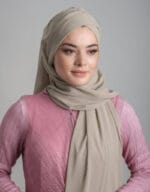 It’s a practical slip-on product, simply put it directly on your head. The scarf part can be worn without pins. It features a built-in bonnet, so there’s no need for an additional inner cap. Made from chiffon fabric. Suitable for both casual and classic outfits.