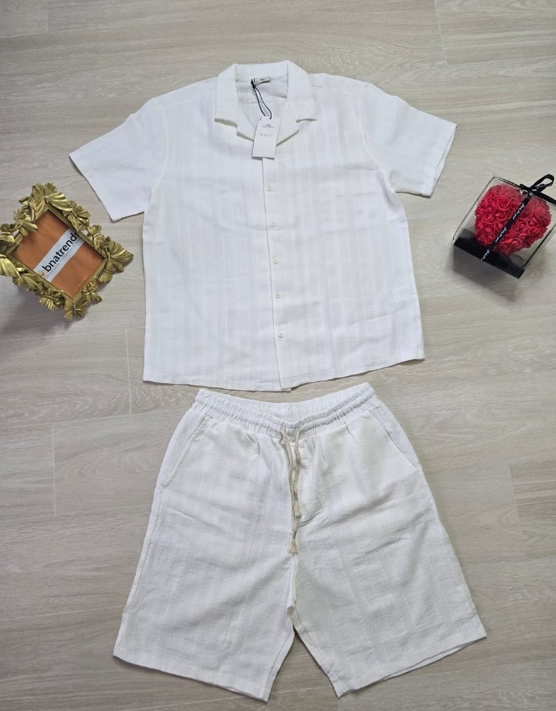 Original price was: ₵857.00.₵600.00Current price is: ₵600.00.Premium Quality Short Sleeve Linen Shirt Set